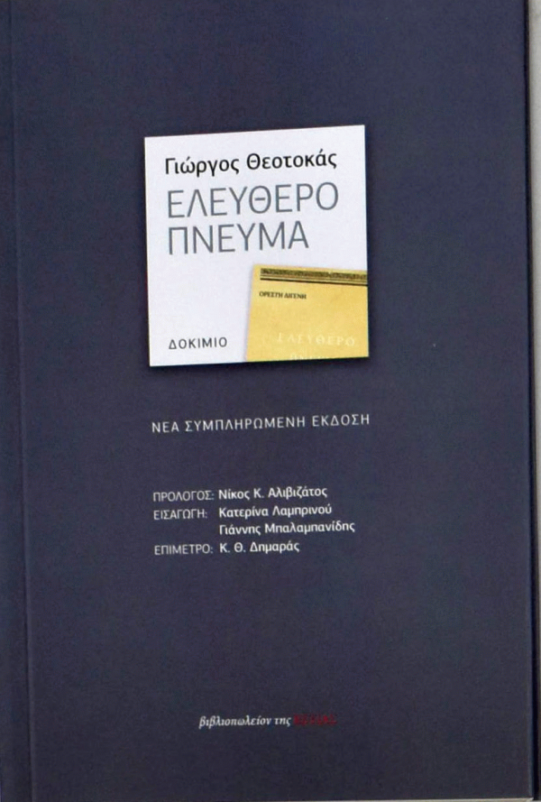 Ελεύθερο πνεύμα / Γιώργος Θεοτοκάς ; πρόλογος Νίκος Κ. Αλιβιζάτος ; εισαγωγή Κατερίνα Λαμπρινού, Γιάννης Μπαλαμπανίδης ; επίμετρο Κ. Θ. Δημαράς.
