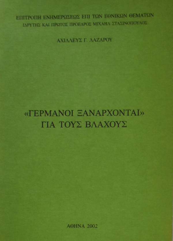 «Γερμανοί ξανάρχονται» για τους Βλάχους : ανάτυπο / Αχιλλεύς Γ. Λαζάρου.