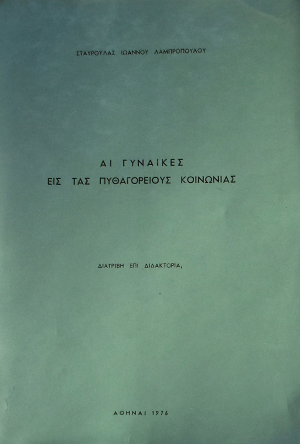 Αι γυναίκες εις τας Πυθαγορείους κοινωνίας / Σταυρούλας Ιωάννου Λαμπροπούλου.