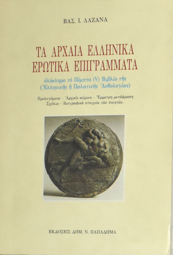 Τα αρχαία ελληνικά ερωτικά επιγράμματα : (Ολόκληρο το Πέμπτο (V) Βιβλίο της Ελληνικής ή Παλατινής Ανθολογίας) / προλεγόμενα - αρχαίο κείμενο - έμμετρη μετάφραση - σχόλια - βιογραφικά στοιχεία των ποιητών Βασ. Ι. Λαζανά.