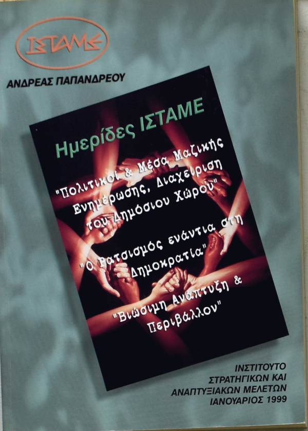 Πολιτικοί & μέσα μαζικής ενημέρωσης, διαχείριση του δημόσιου χώρου (Δημόσια εκδήλωση: Αθήνα, 22 Ιανουαρίου 1998) -- Ο ρατσισμός ενάντια στη δημοκρατία (Δημόσια εκδήλωση: Αθήνα, 26 Ιανουαρίου 1998) -- Βιώσιμη ανάπτυξη και περιβάλλον (Δημόσια εκδήλωση: Αθήνα, 12 Μαρτίου 1998).