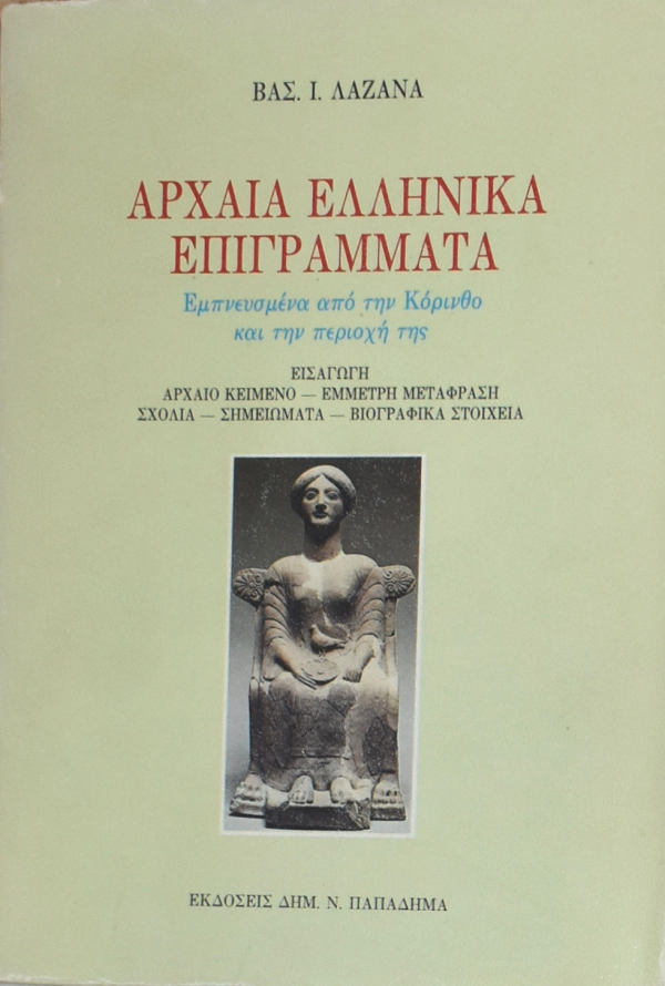 Αρχαία ελληνικά επιγράμματα : Εμπνευσμένα από την Κόρινθο και την περιοχή της / εισαγωγή - αρχαίο κείμενο - έμμετρη μετάφραση - σχόλια - σημειώματα - βιογραφικά στοιχεία Βασ. Ι. Λαζανά.