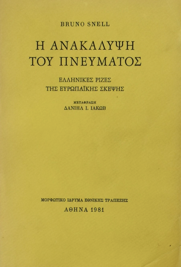 Η ανακάλυψη του πνεύματος : ελληνικές ρίζες της ευρωπαϊκής σκέψης / Bruno Snell ; μετάφραση Δανιήλ Ι. Ιακώβ.