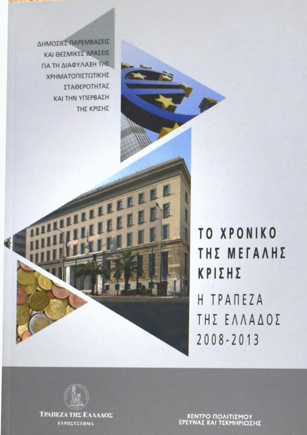 Το χρονικό της μεγάλης κρίσης : Η Τράπεζα της Ελλάδος 2008-2013 : δημόσιες παρεμβάσεις και θεσμικές δράσεις για τη διαφύλαξη της χρηματοπιστωτικής σταθερότητας και την υπέρβαση της κρίσης / [συντονισμός έκδοσης Κέντρο Πολιτισμού, Έρευνας και Τεκμηρίωσης].