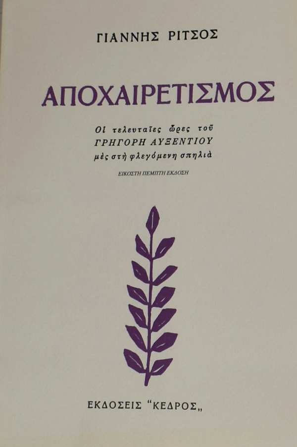 Λεπτομέρειες δημοσίευσης: [Αθήνα] : Κέδρος, 1984