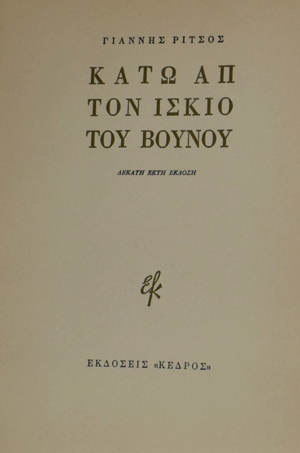 Κάτω απ' τον ίσκιο του βουνού / Γιάννης Ρίτσος. από