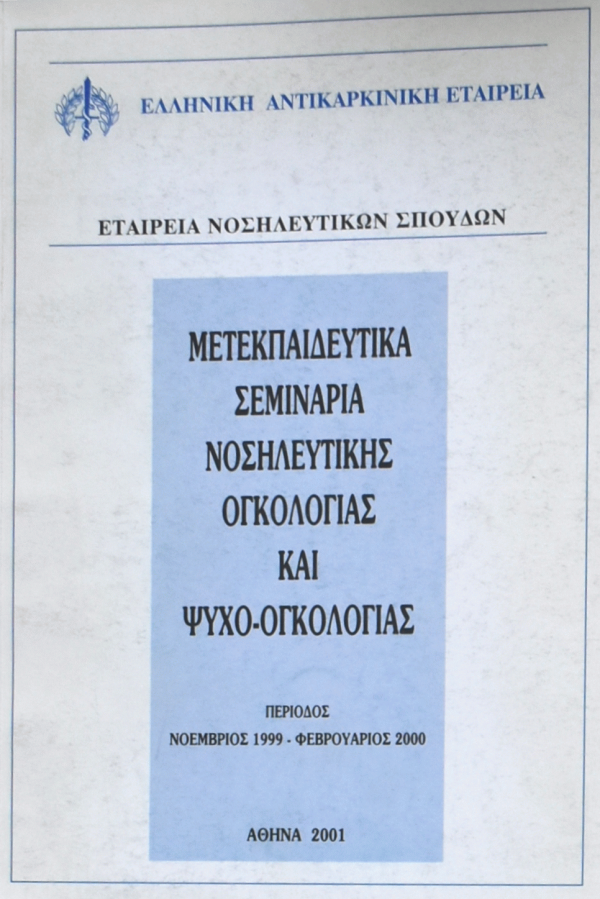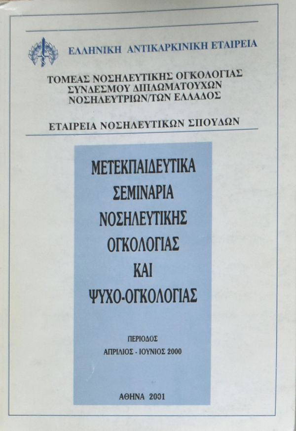 Μετεκπαιδευτικά σεμινάρια νοσηλευτικής ογκολογίας και ψυχο-ογκολογίας : Περίοδος Απρίλιος - Ιούνιος 2000 /