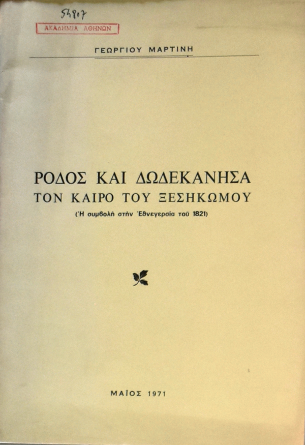 Λεπτομέρειες δημοσίευσης: Αθήναι : Μ. Γεωργιάδης, 1971