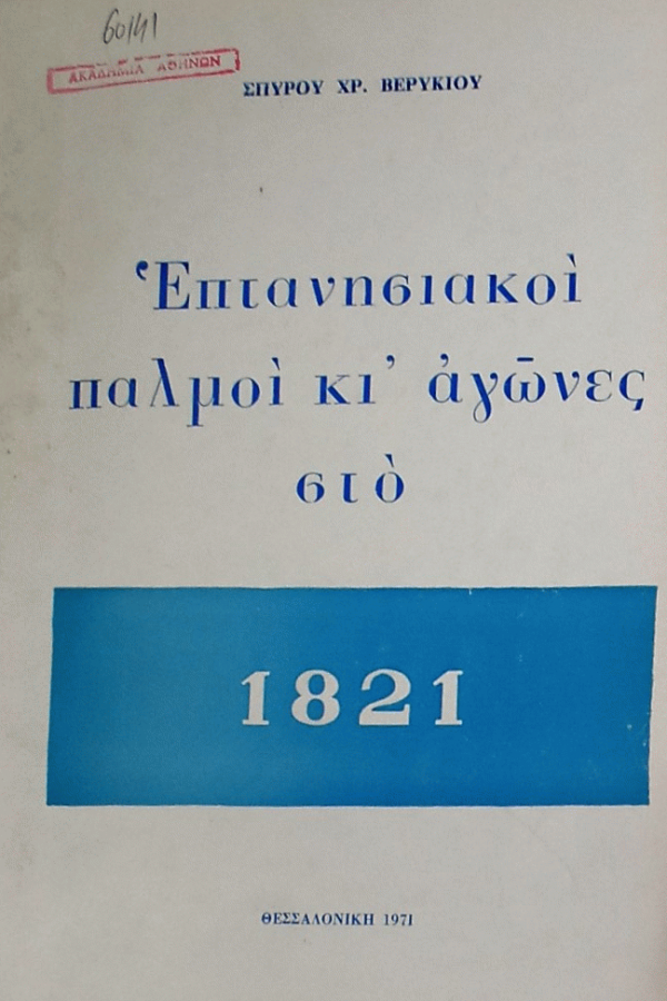 Επτανησιακοί παλμοί κι' αγώνες στο 1821 / Σπύρου Χρ. Βερυκίου. από