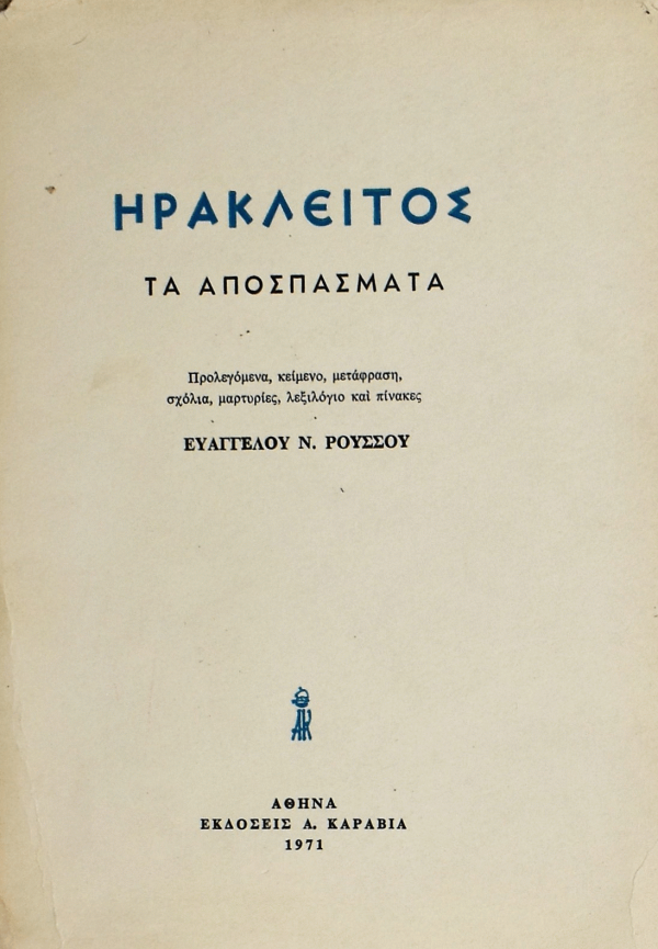 Λεπτομέρειες δημοσίευσης: Αθήνα : Εκδόσεις Α. Καραβία, 1971